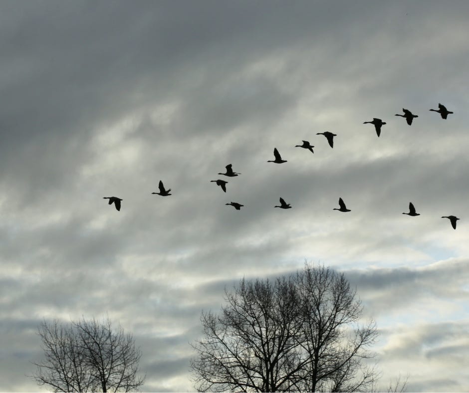 As I carry my cup into the kitchen, I see the rain has eased. The sky has lightened and I hear another sound in the distance. It gets nearer and nearer, and I open the door to see the Winter geese flying overhead, their sound becoming more distant as they disappear over the hill and far away. To me they seen to be carrying a message within their calling; an urgency that tells me time is running out. Winter’s breath of ice and glory is almost over. Winter is living on borrowed time.